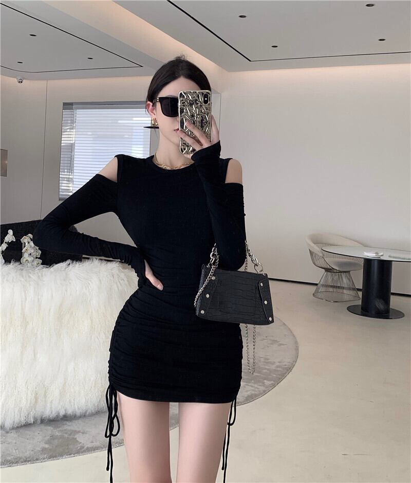 秋の女性の2021年の新しいスタイルの小さな黒いドレスセクシーなストラップレス巾着プリーツストラップタイトフィットヒップドレス micat75315788219