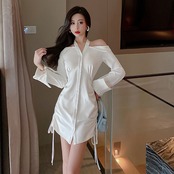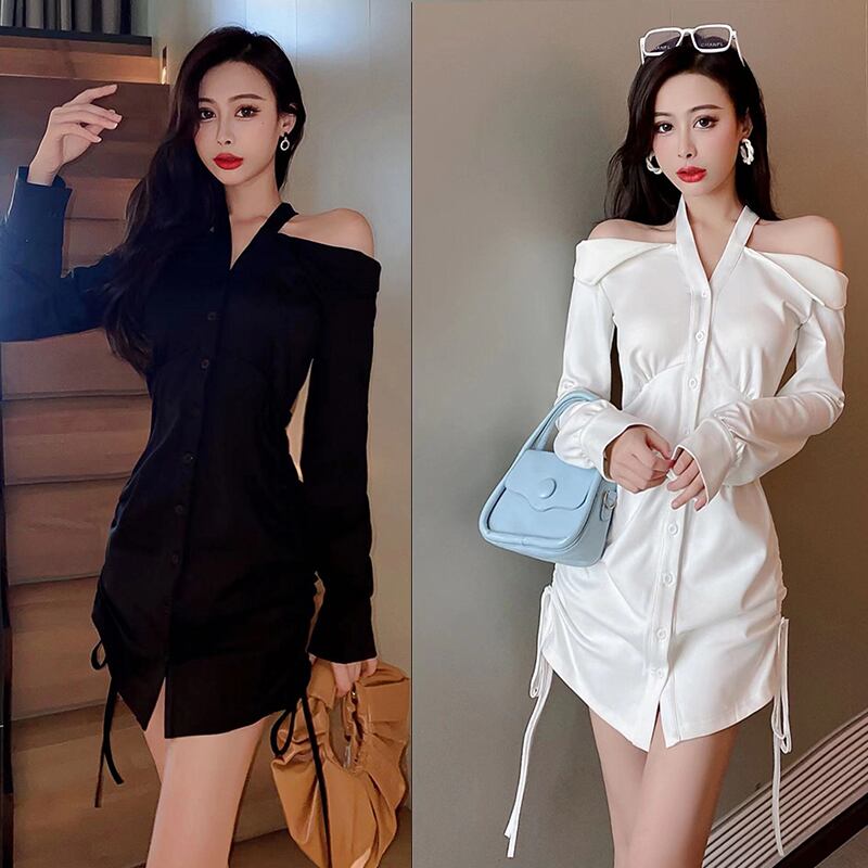 シャツスカート秋婦人服2021新デザインセンスニッチウエストウエストスリムセクシーストラップレスハンギングネックワンピース micat92296654665