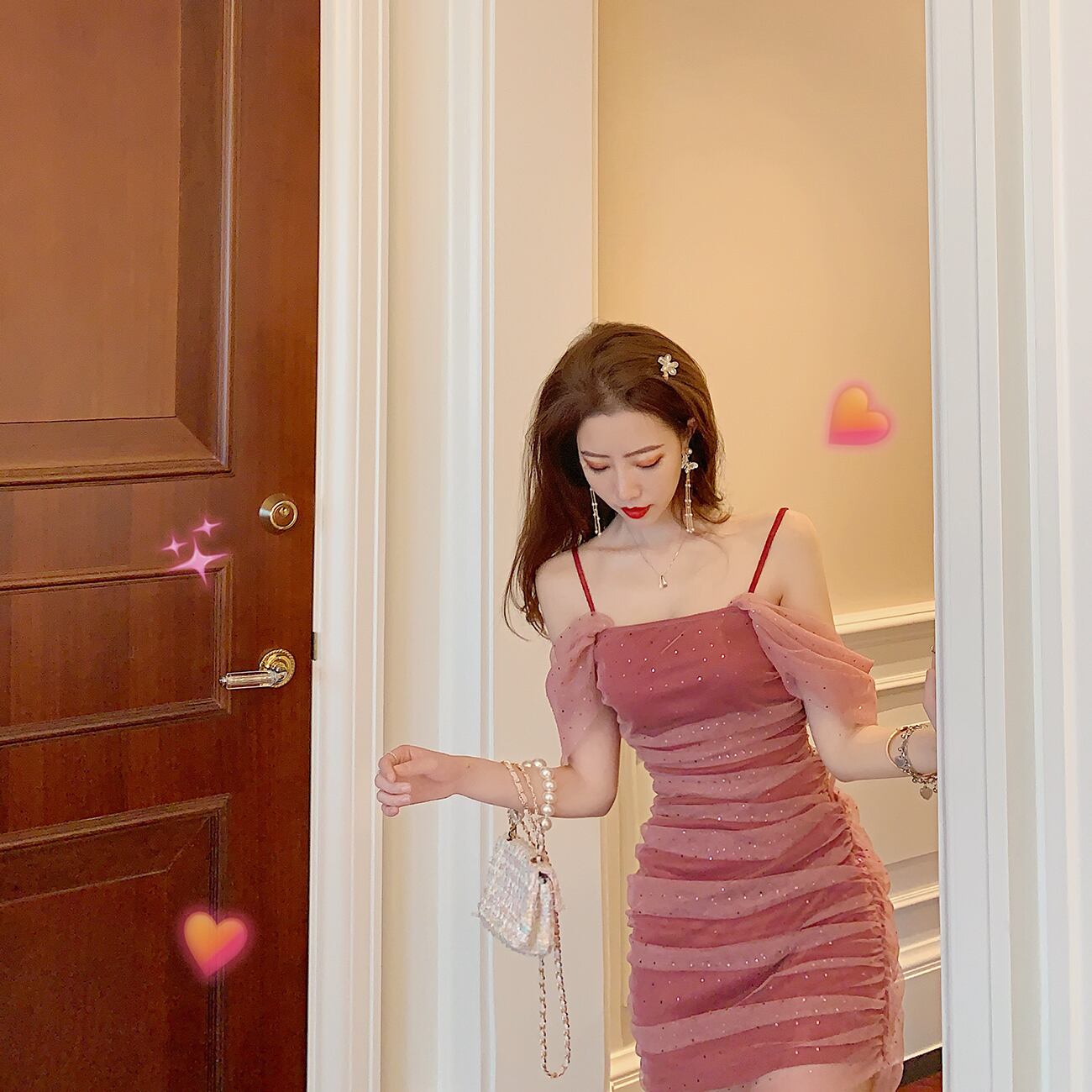イブニングバンケット気質スーパーフェアリーネットヤーンスモールドレスフェアリーシャイニングセクシーショートバッグヒップスリングドレス micat38569408118