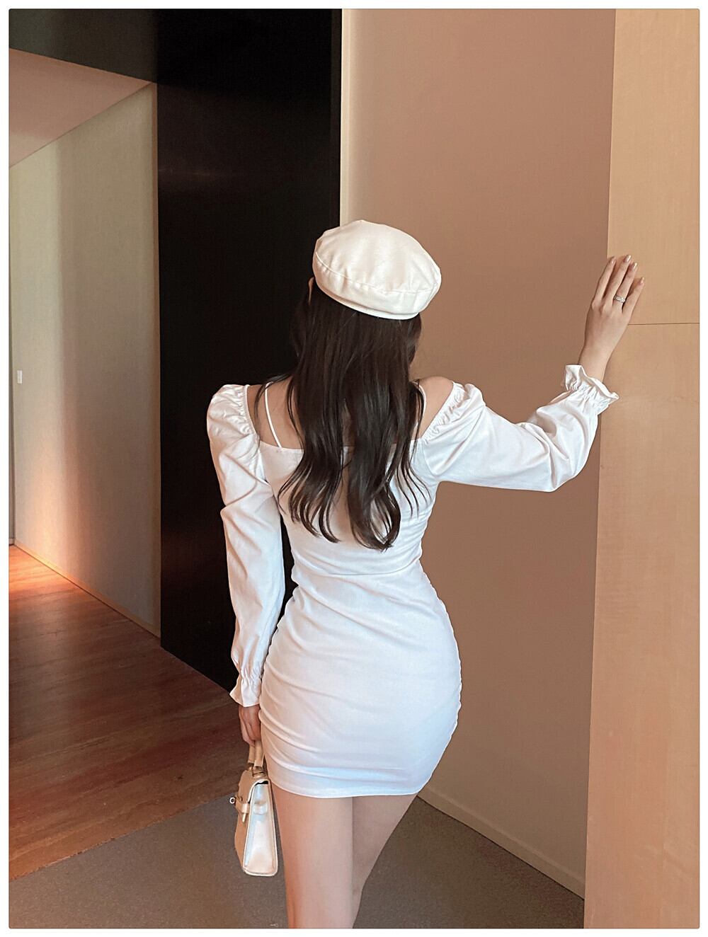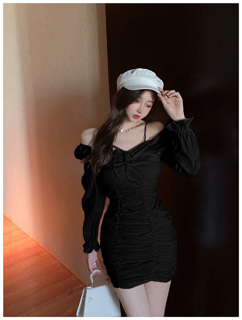 ネットレッドアンカーコスチューム女性のポジェニック秋フランスのセクシーなスクエアネックパフスリーブオフショルダー長袖サスペンダードレス micat21907794869