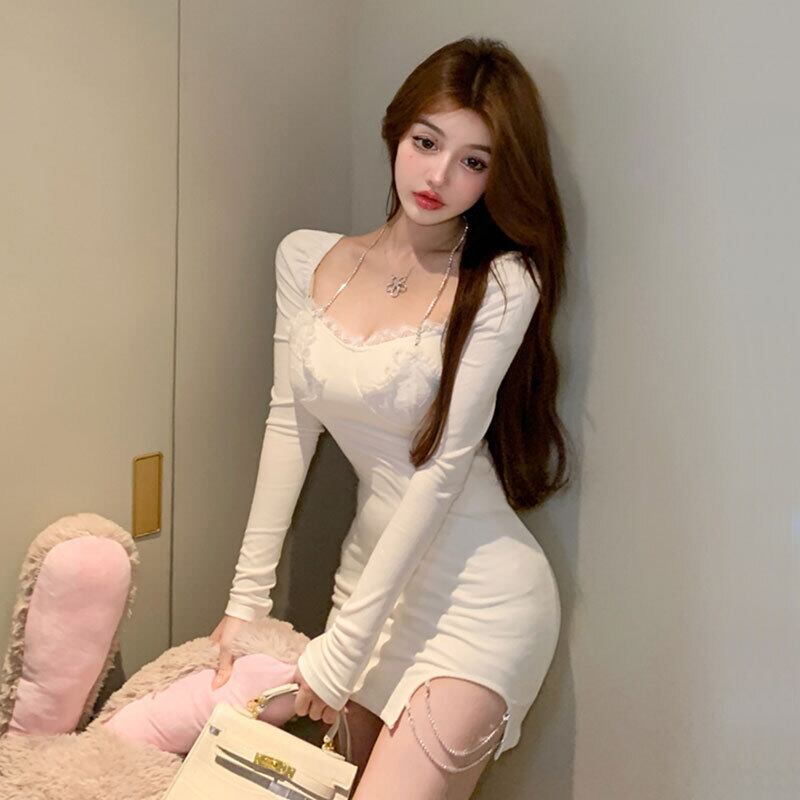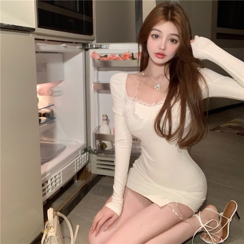 2021年秋新しい女性のインターネット有名人アンカーフレンチレーススクエアカラーセクシーなスプリットボトミングドレス micat58099542091