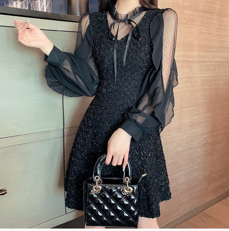 フランスのレディースミニドレスショートスパークリングシャイニーシルクヘップバーンスタイルライトラグジュアリーハイエンドスーパーフェアリーメッシュステッチドレス micat49888417109