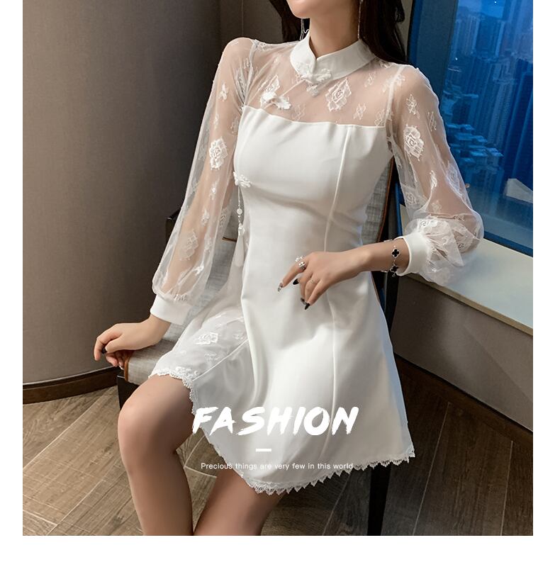 2021年秋新しい女性の若いスタイルの西洋スタイルのセクシーなメッシュステッチフランスの改良されたチャイナドレス micat59694239048