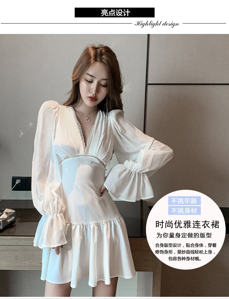 ナイトクラブレディースナイトワーク服技術者作業服セクシーなローカットディープVネック長袖フィッシュテールドレス micat71180751169
