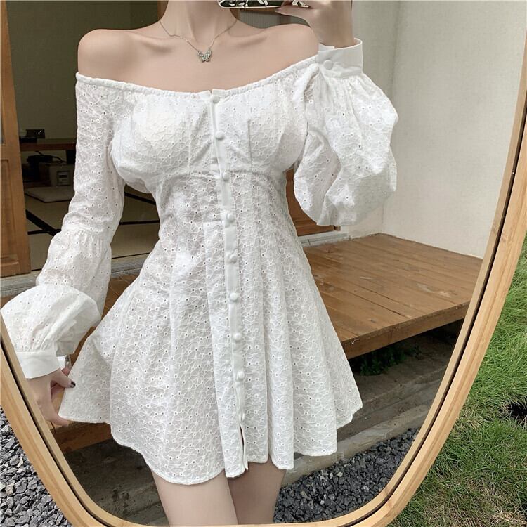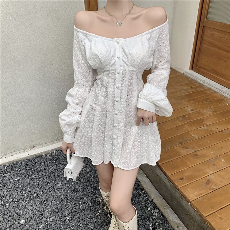 フランスの小さな白いドレス初秋のドレス2021新しいフェミニンなワンショルダー白いウエストウエストスリムふくらんでいるドレス micat11276110671