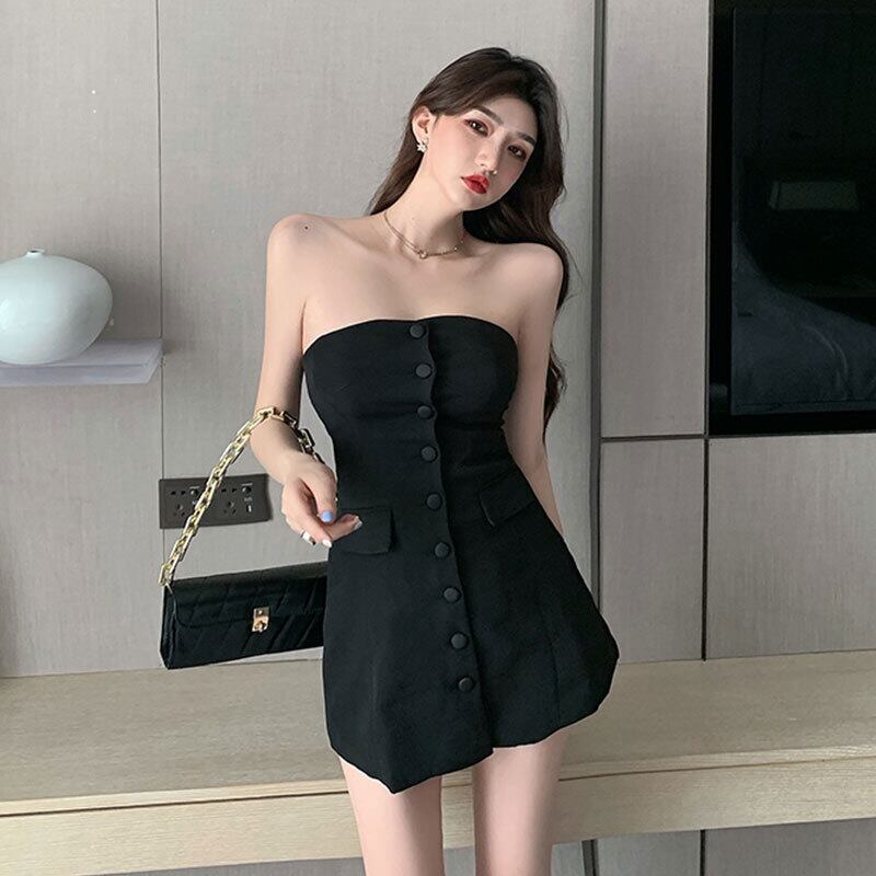 ナイトクラブレディースナイトワーク服スモールドレスセクシーワンショルダーブラックスリムショートチューブトップドレス micat13324248348