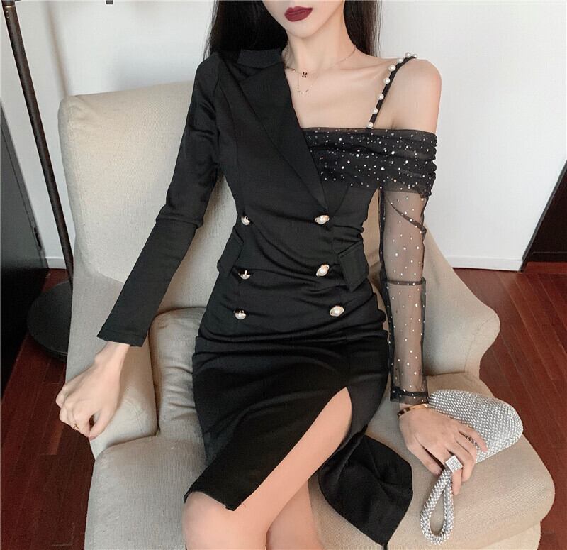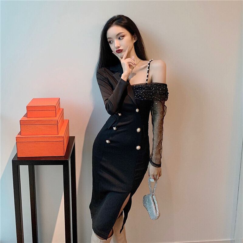 2021年秋新しい女性のハイコールドYujieスタイルのセクシーな斜めの襟ワンショルダーストラップレスミドル丈サスペンダードレス micat22382931442
