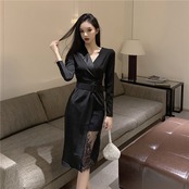 2021年秋新作女性ハイコールド姉風気質セクシーレースステッチスーツ衿ミドル丈ワンピース micat70822630172