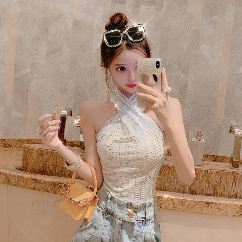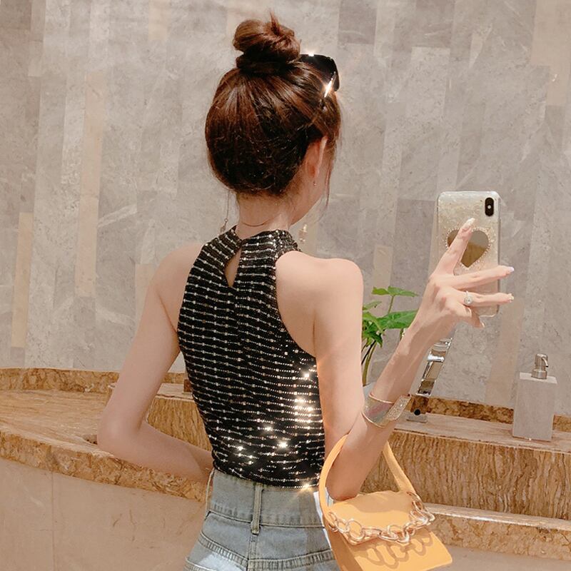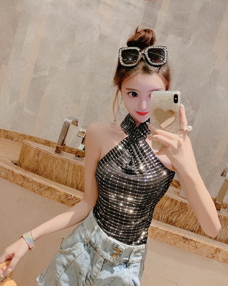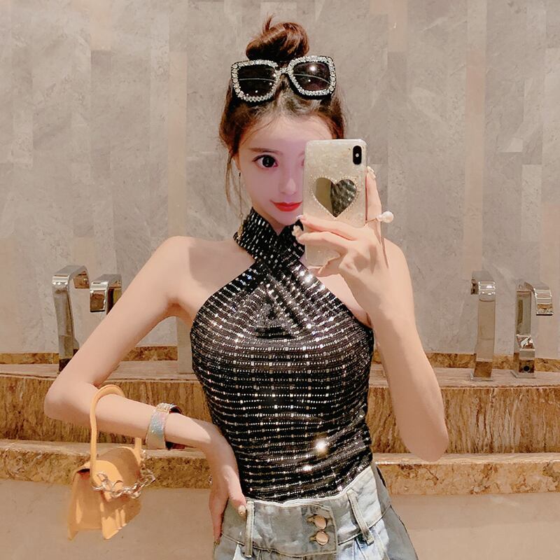 ベスト女性アウターネットセレブアンカー服ファッションスパークリングスパンコールオールマッチボトミングセクシーストラップレスホルタートップ micat69630798401