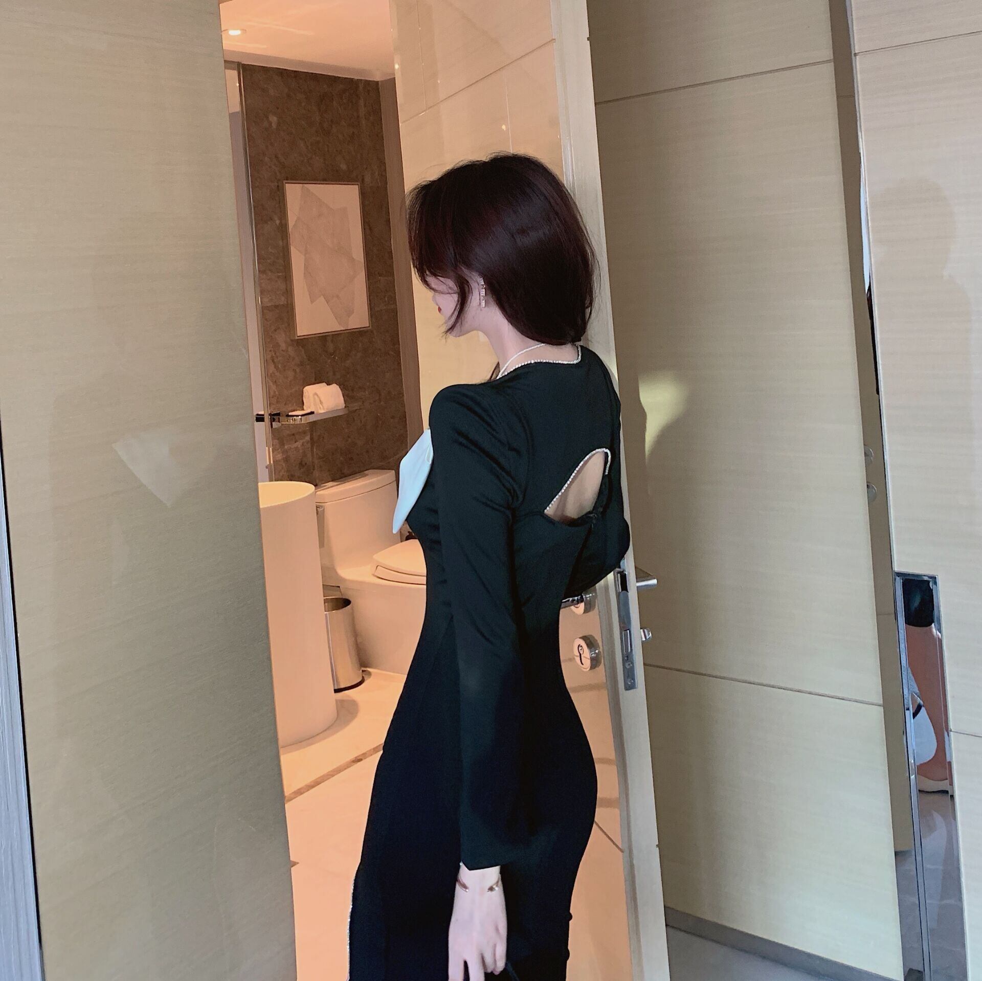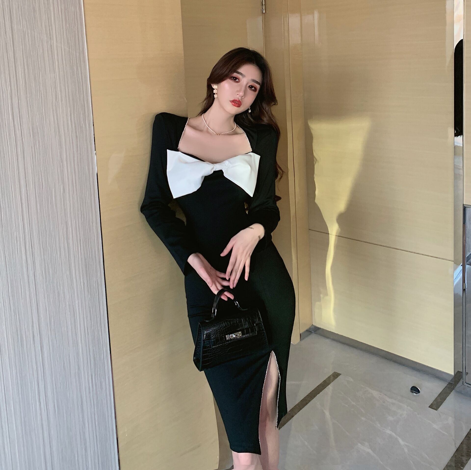 Gao Lengfan、成熟した、帝国の姉妹スタイルの女性の秋フランスの女性の気質の正方形の首の弓の中間の長さのドレス micat99188667008