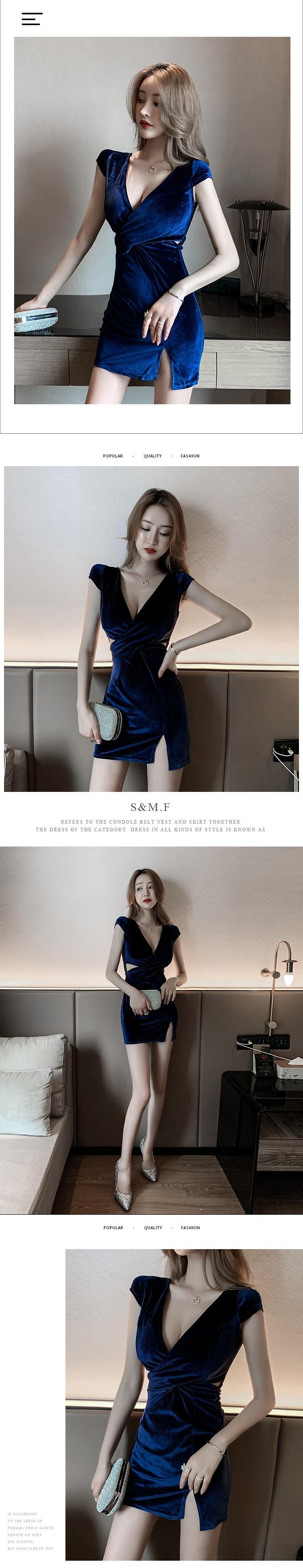 夜の作業服技術者気質セクシーなローカットVネックチェストレス半袖ウエスト薄手のベルベットバッグヒップドレス micat6132616242
