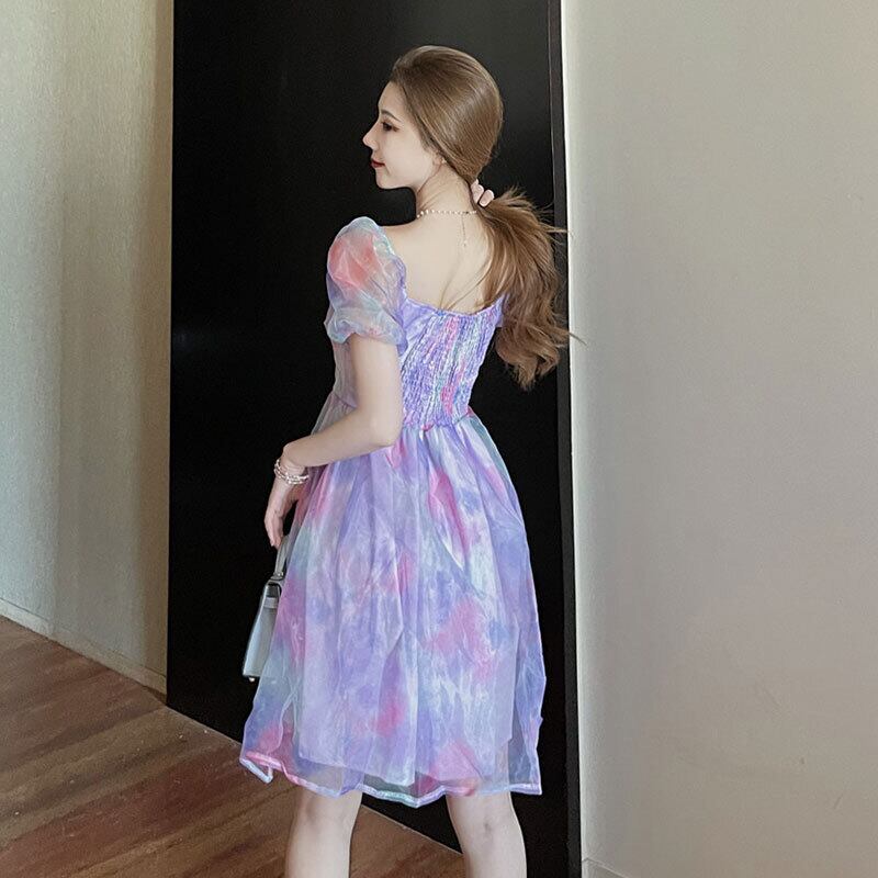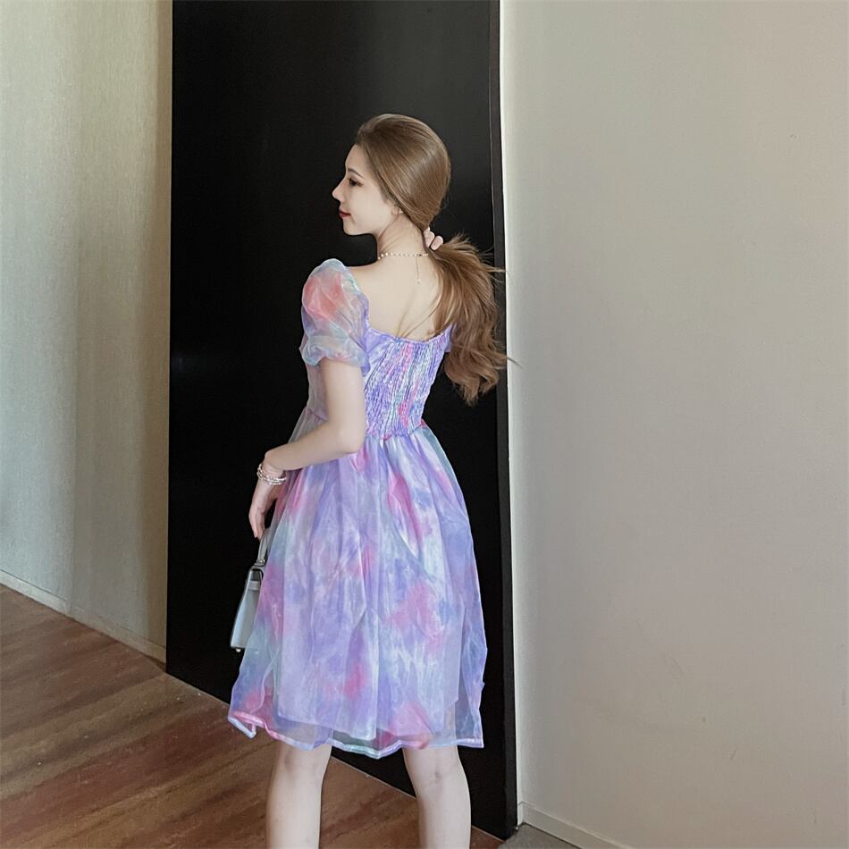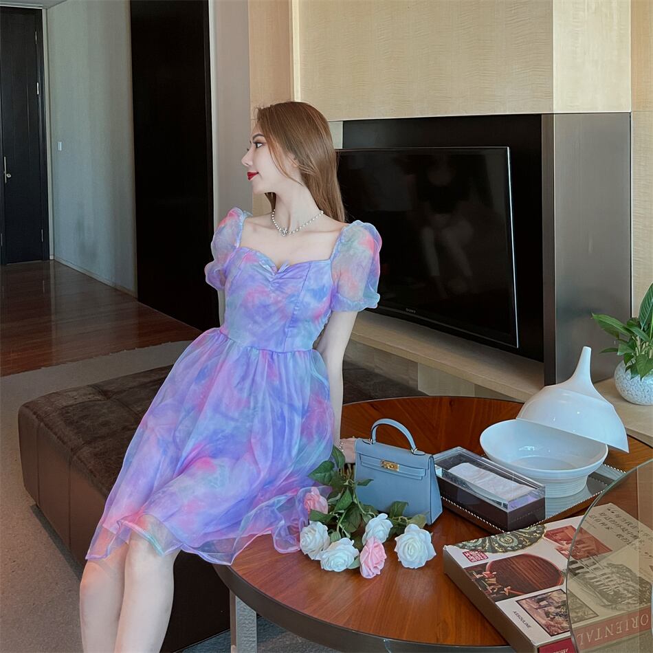 フランスのプリンセスドレス女性の大人の小さなドレススーパーフェアリーネットガーゼスクエアネックパフスリーブシンフォニーオーガンザふくらんでいるドレス micat3650906645