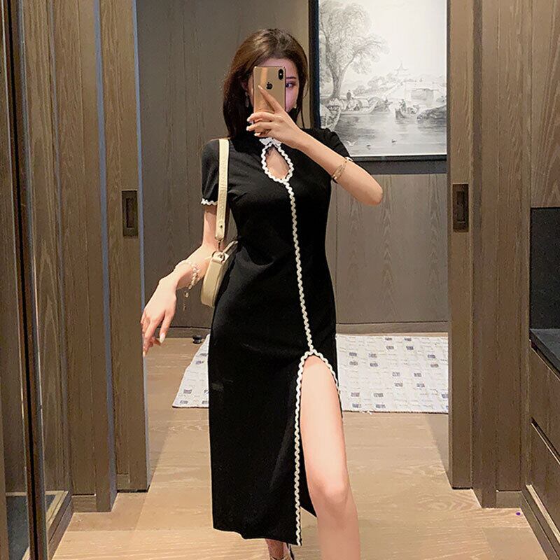 2021年の新しい女性のイブニングドレスの宴会の気質中国風のセクシーなスプリットミドル丈チャイナドレス改良版ドレス micat972506627