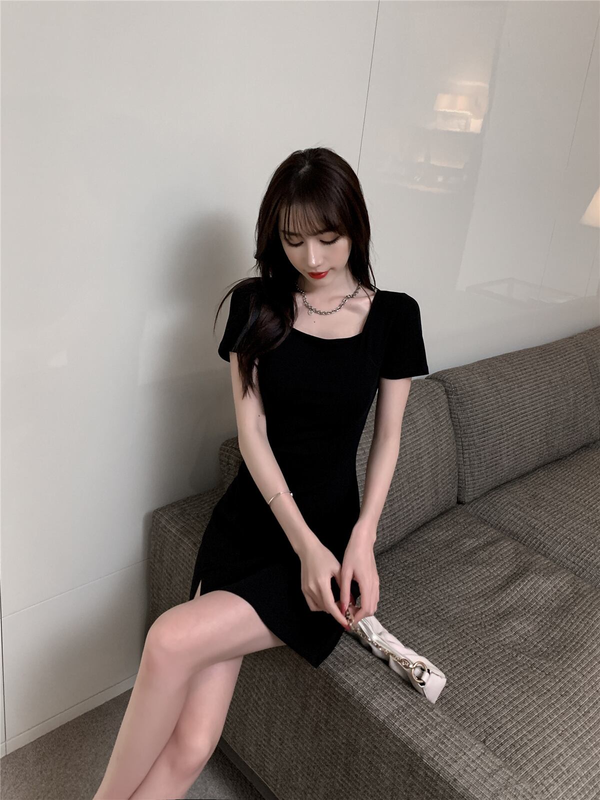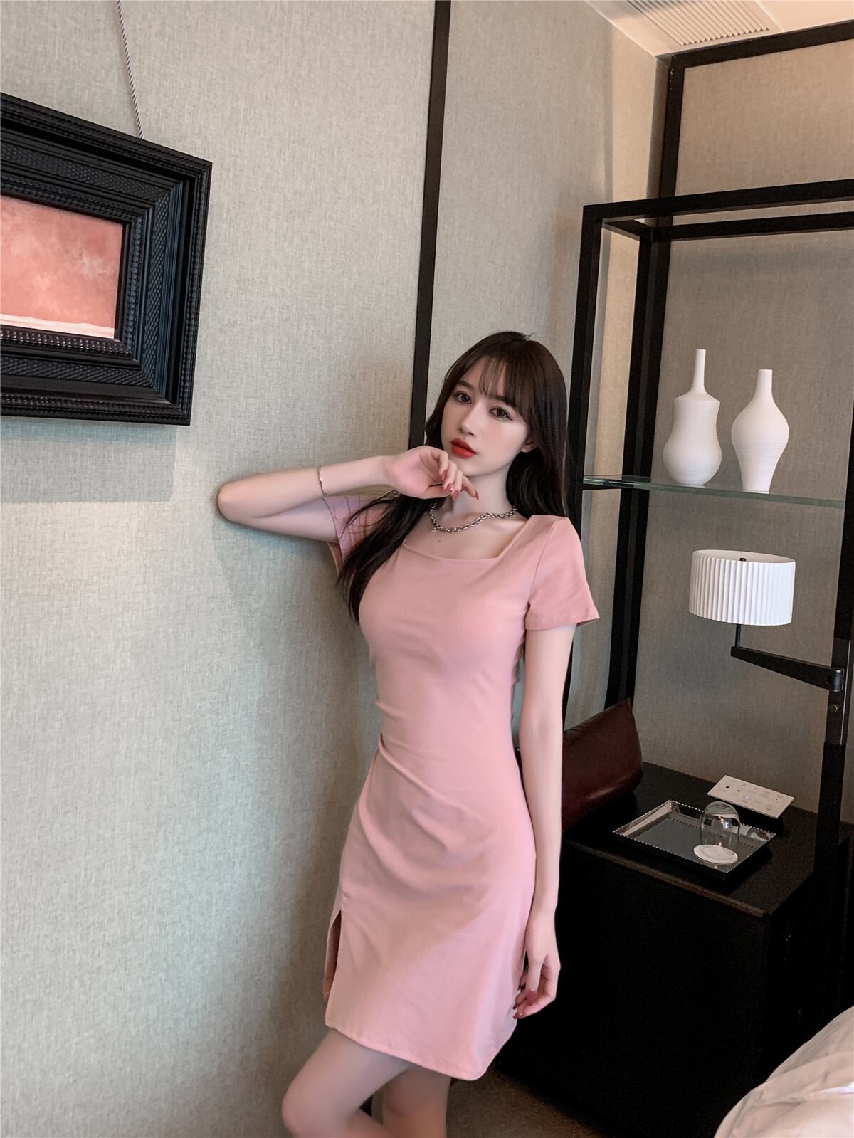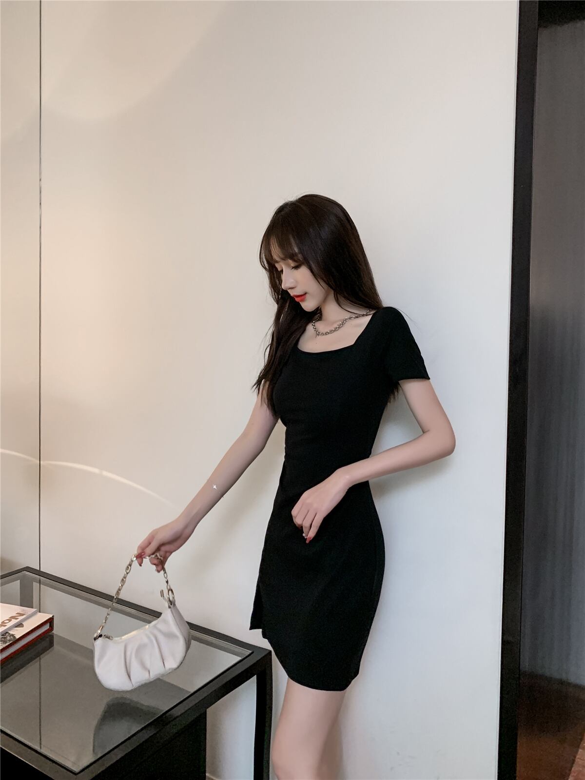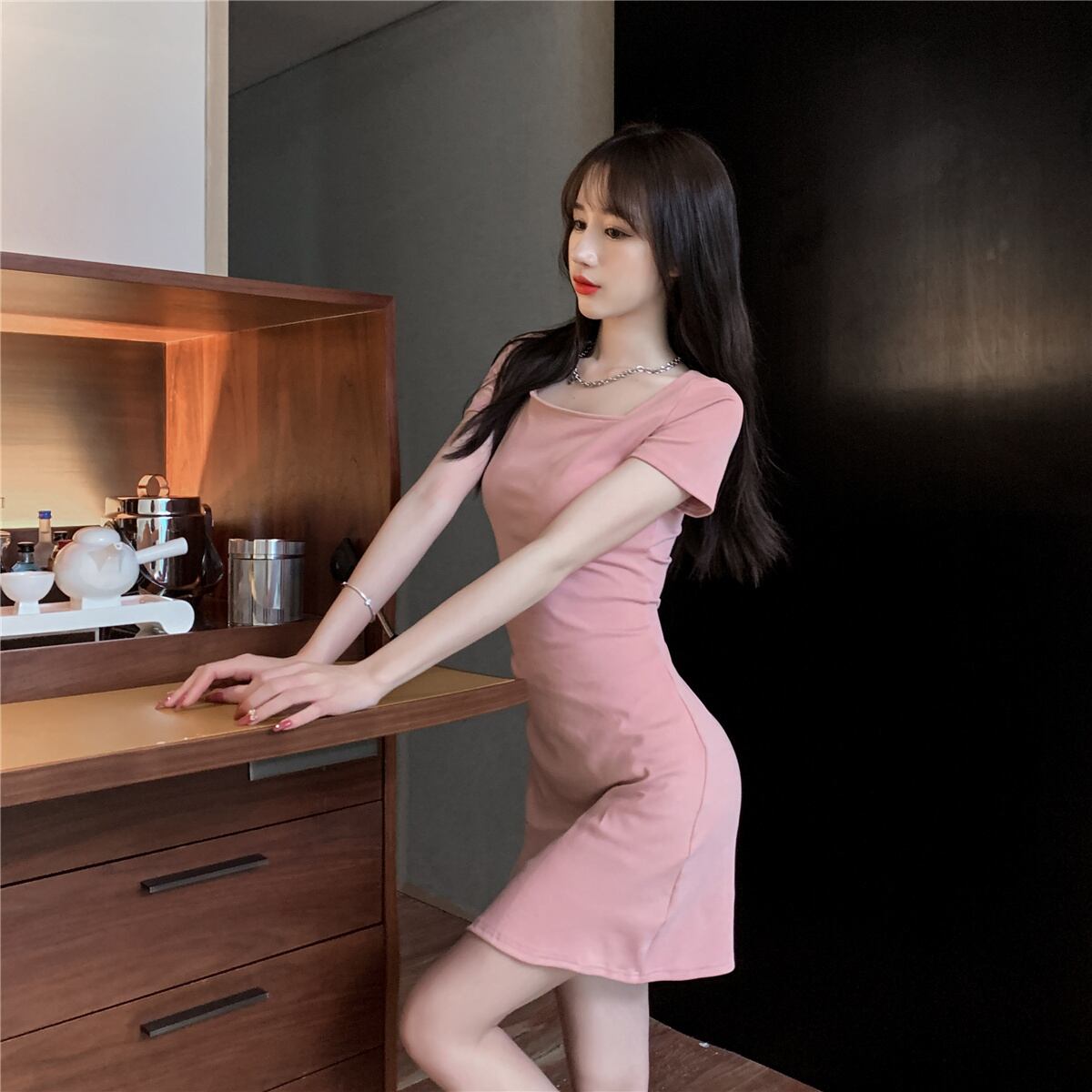 2021年夏人気の婦人服新気質セクシースクエアネックスリムスリミングショートバッグヒップスプリットドレス micat78261911580