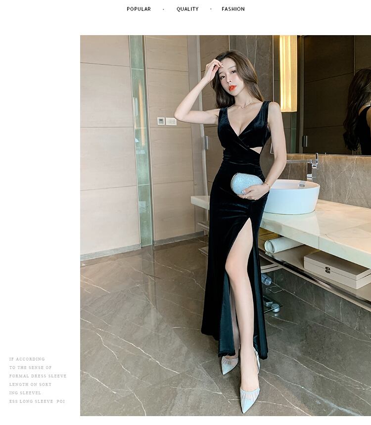 イブニングドレス、ロングスカート、ナイトクラブ、女性の夜の作業服、セクシーなローカットの深いVネックノースリーブロングドレス micat96755148302