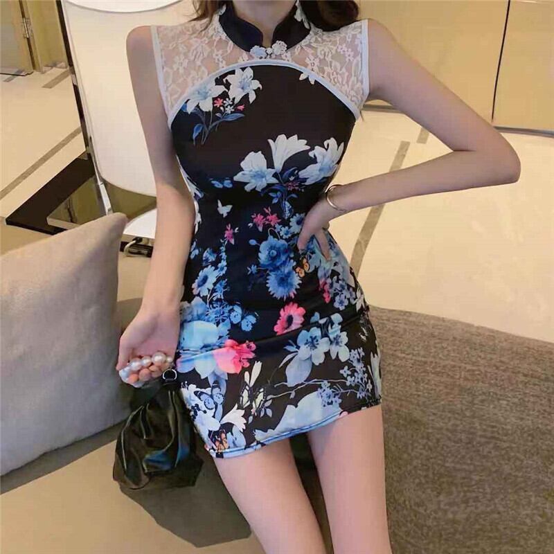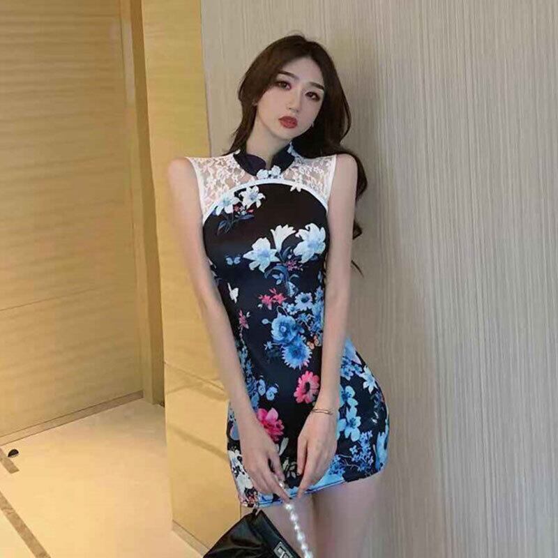 ライブ服アンカー服女性若いセクシーなレースステッチ短いチャイナドレス改良版ドレス micat16135917344