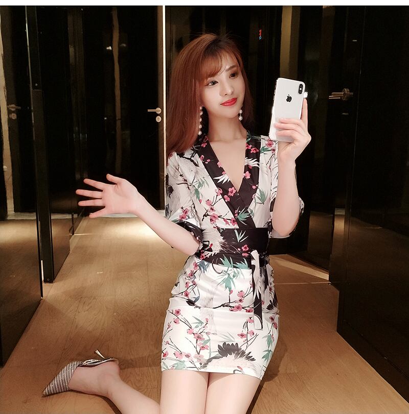 夜の作業服、足湯技術者の作業服、女性のセクシーなVネックウエストと細いヒップの着物ドレス micat72300743159