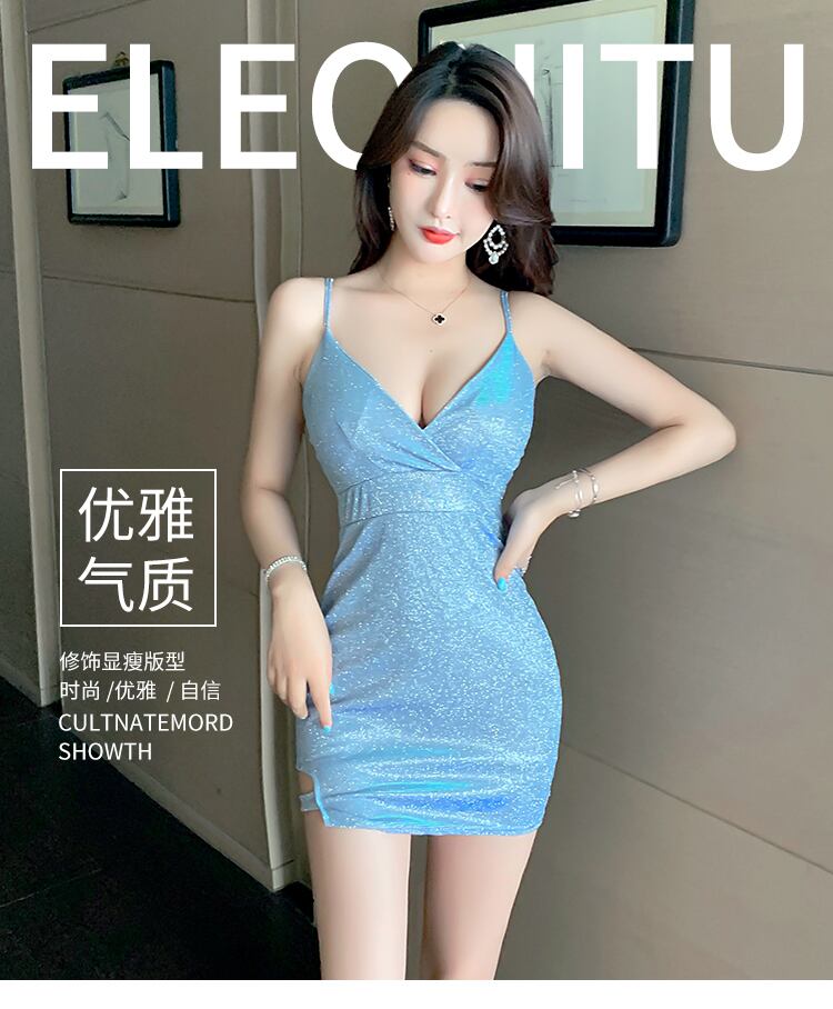 ナイトクラブの女性の夜の作業服の小さなドレスセクシーなローカットの深いVネックの光沢のあるシルクサスペンダードレス micat69128189295