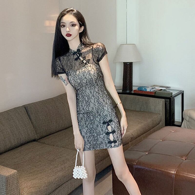 レースチャイナドレス女性2021年夏新しいスタイルの若くて改良されたバージョンセクシーなぴったりしたショートヒップドレス micat42634867729