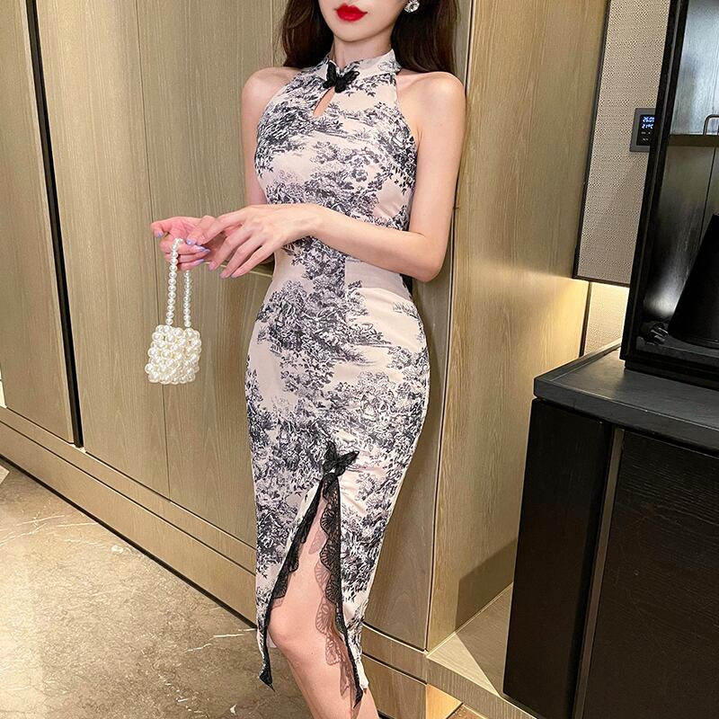 チャイナドレス2021年夏の新作チャイナスタイルの水墨画プリントセクシーなストラップレスミドル丈ドレス micat23533687884