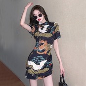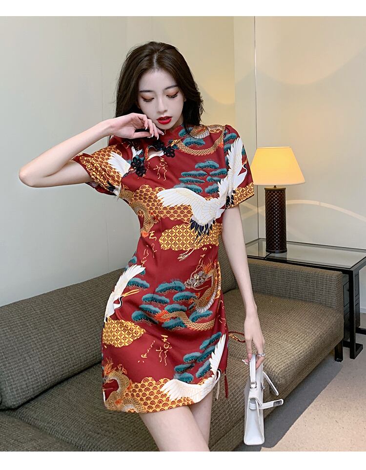 ナショナルタイド改良チャイナドレス2021夏の若い中国風プリントセクシーヒップドレス micat77293625462