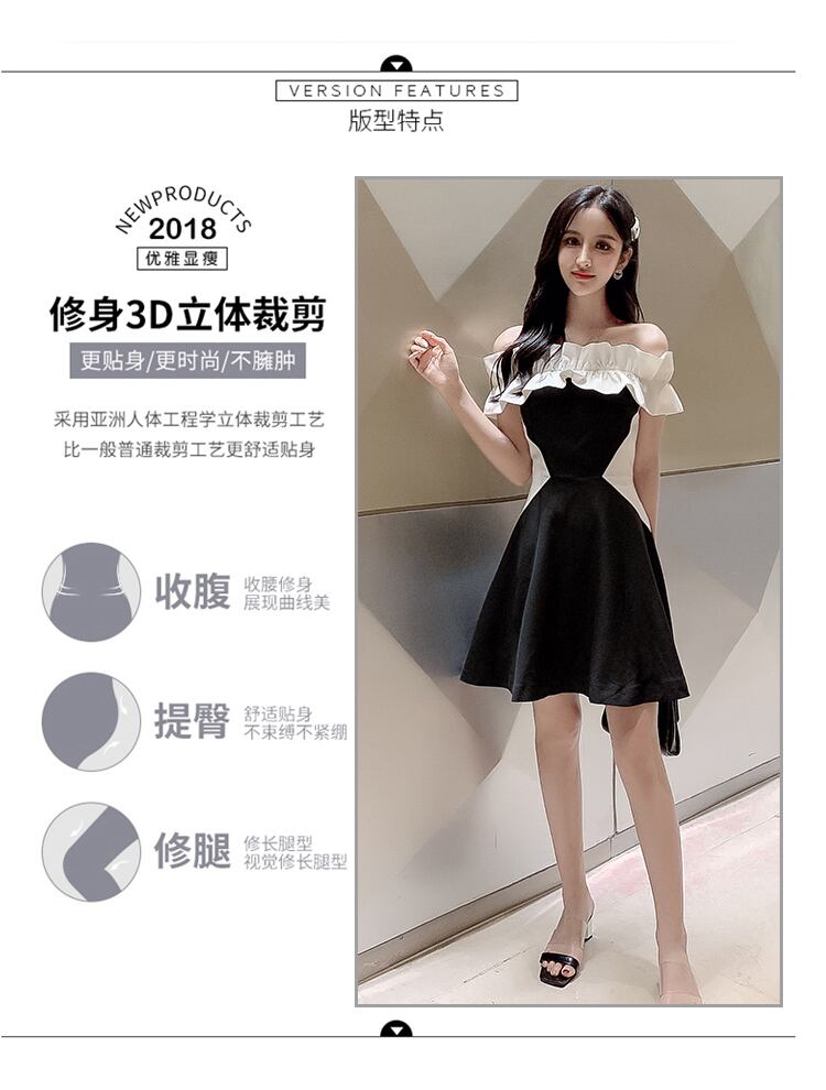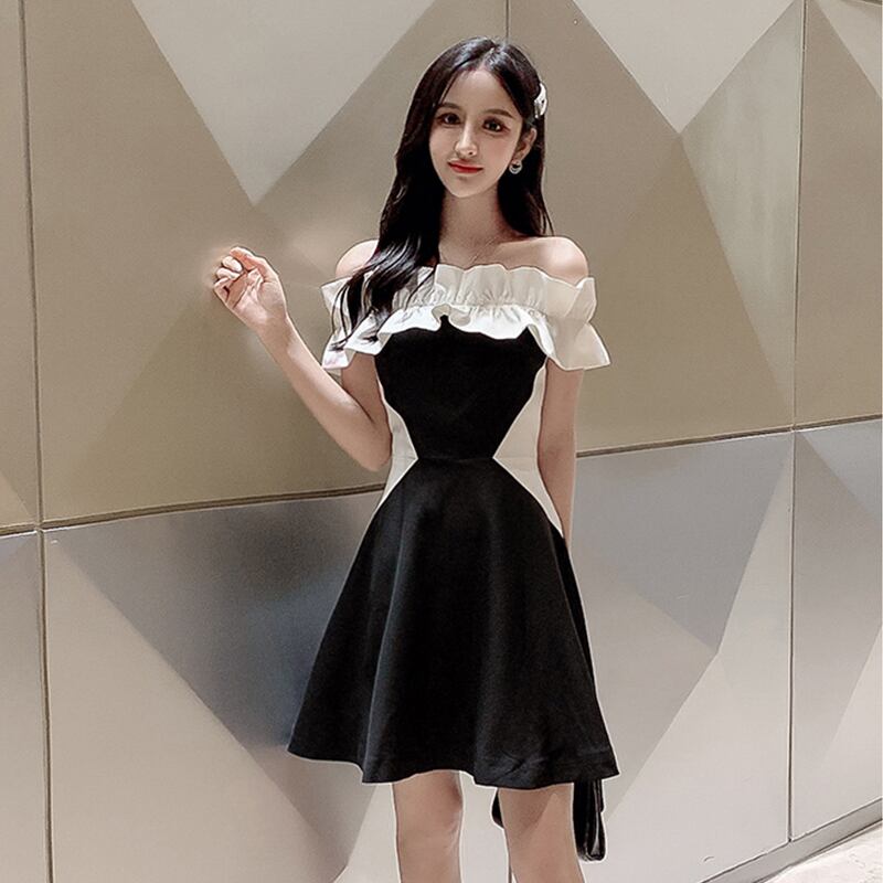 アンカードレススモールドレスショートスウィートセクシーワンショルダー黒と白のステッチプリンセスドレス大人のチュチュスカート micat42663856743
