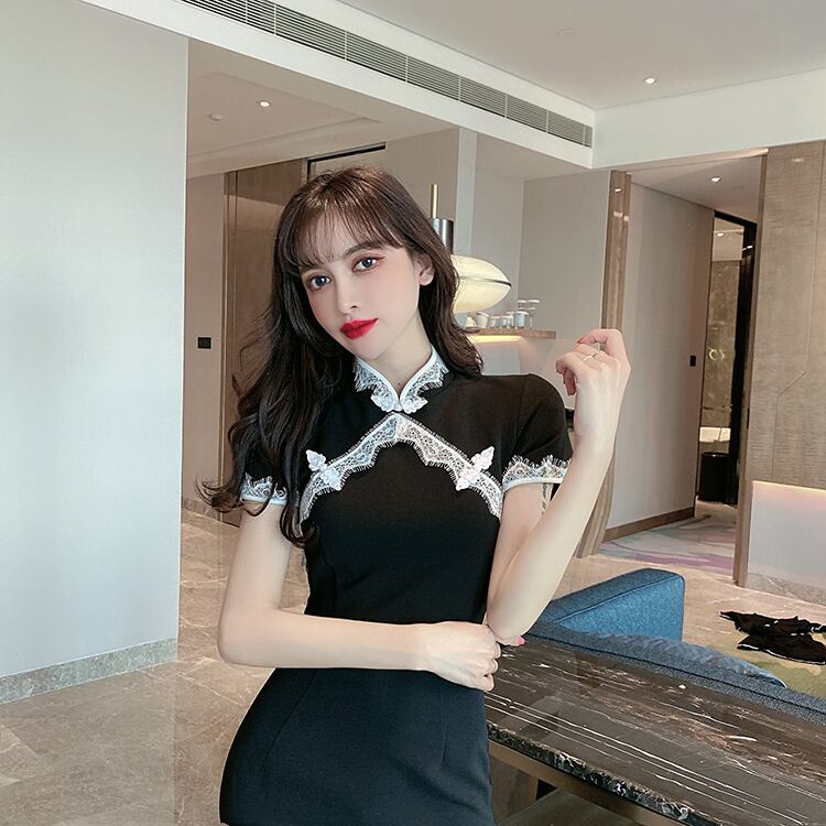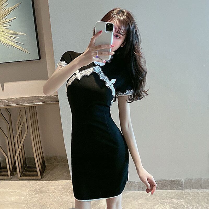 チャイナドレス2021年夏新しい若いレトロな改良版レースステッチ共和党スタイルのドレス micat64911741349
