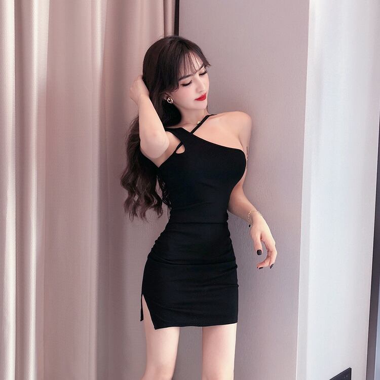 ナイトバーレディース2021新しいトレンディなセクシーなリトルブラックドレス斜めの襟タイトフィットヒップショートスリングドレス micat25620720136