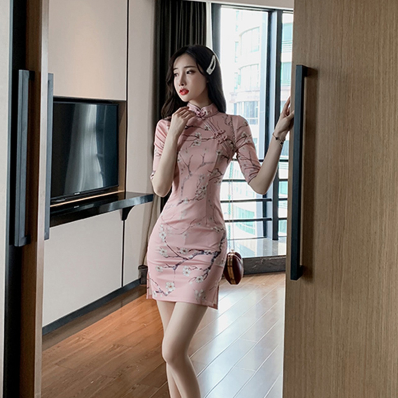 ナショナルスタイルのチャイナドレスデイリーウェア若いセクシーなスリムショート5ポイントスリーブ改良版ドレス micat51649974011