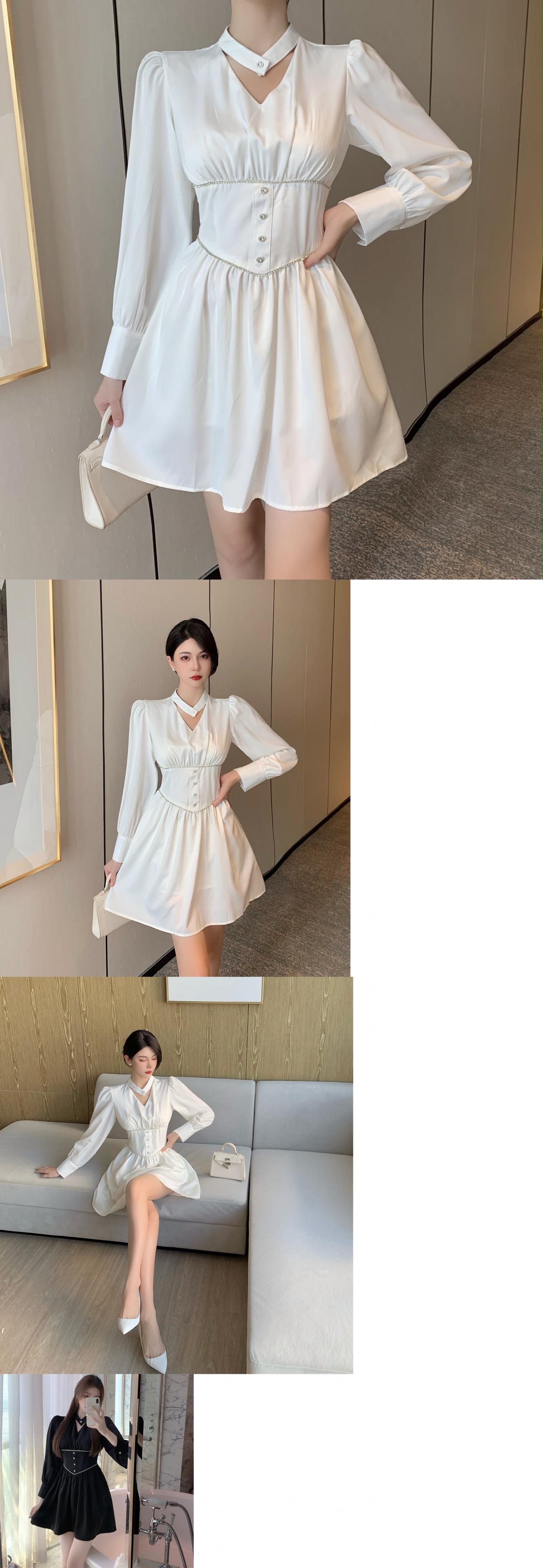 成熟した姉スタイルの女性の秋のhigh-clセンスの女性の気質フランスのレトロなサテンのウエストスリミングドレス micat60215125011