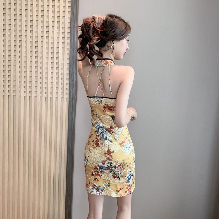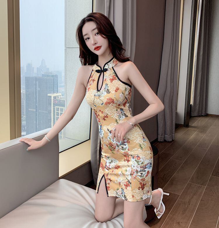 チャイナドレス女性夏改良版ナイトセクシーホルターヤングスタイルチャイナスタイルプリントバッグヒップスプリットドレス micat60329950275