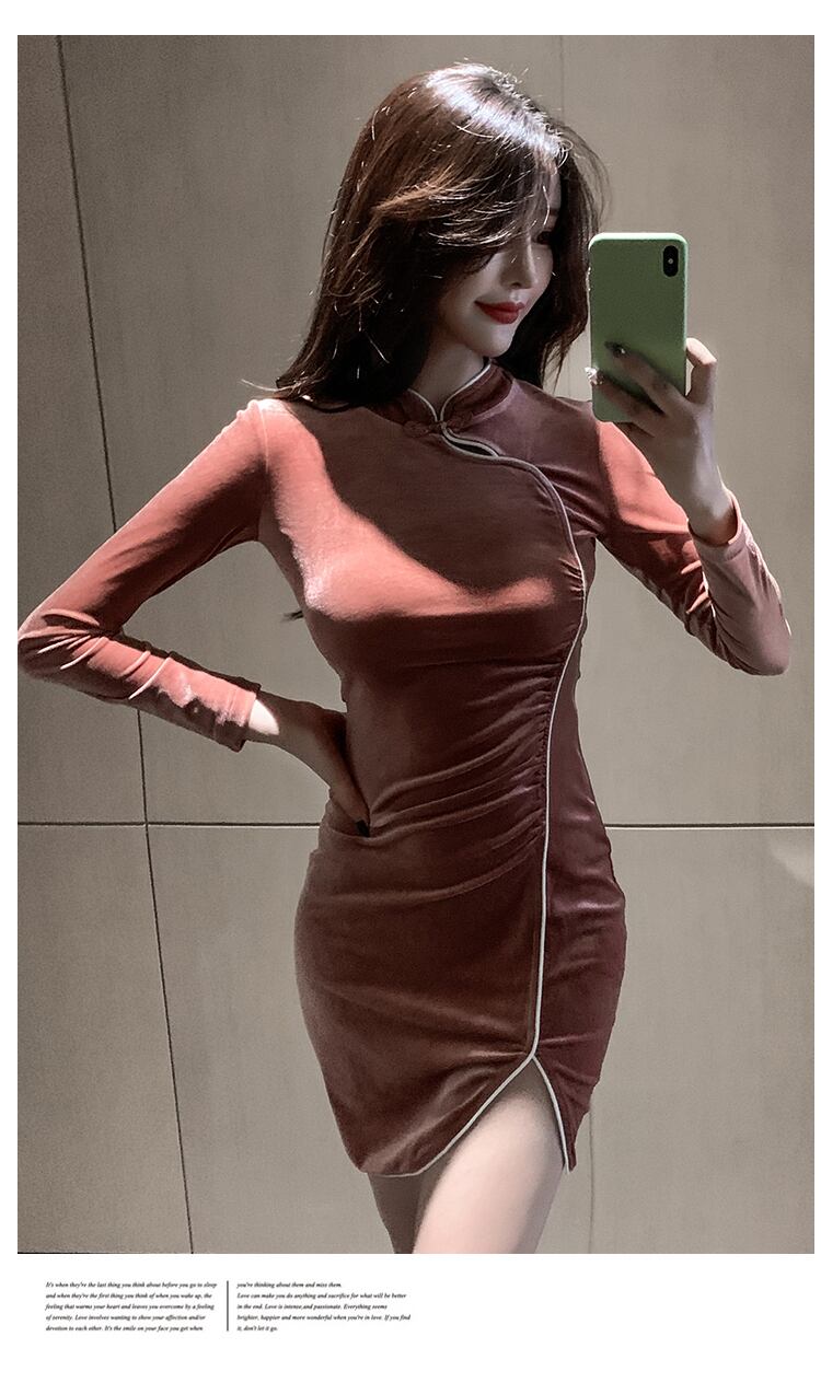 2021年秋新しい女性の若いスタイルの国民の潮中国スタイルの毎日のセクシーなゴールドベルベットはチャイナドレスを改善しました micat49643558319