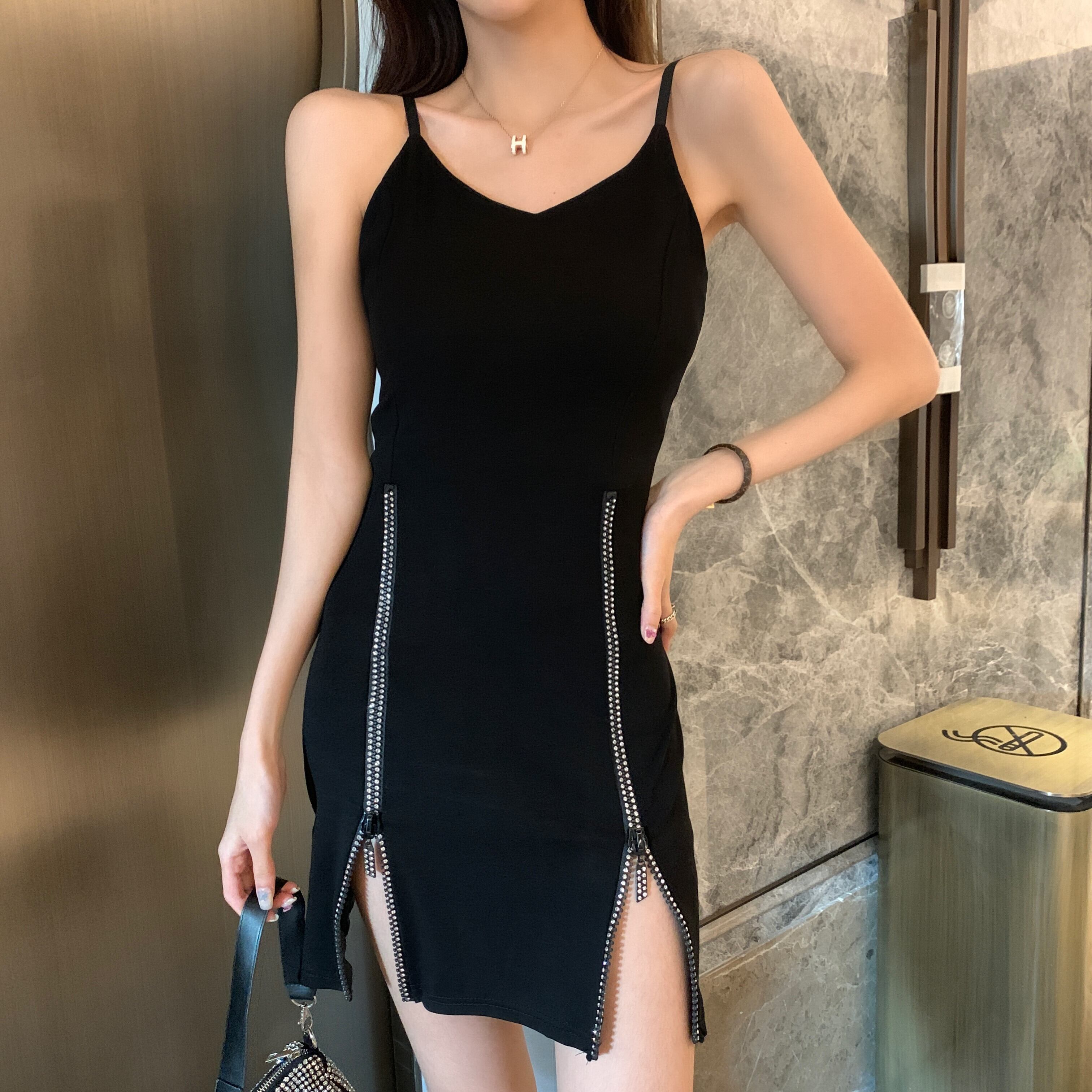 ブラックハートセクシーな陰謀リトルブラックドレスヘップバーンスタイルのショートドレス気質セクシーなジッパースリットサスペンダードレス micat18141584553