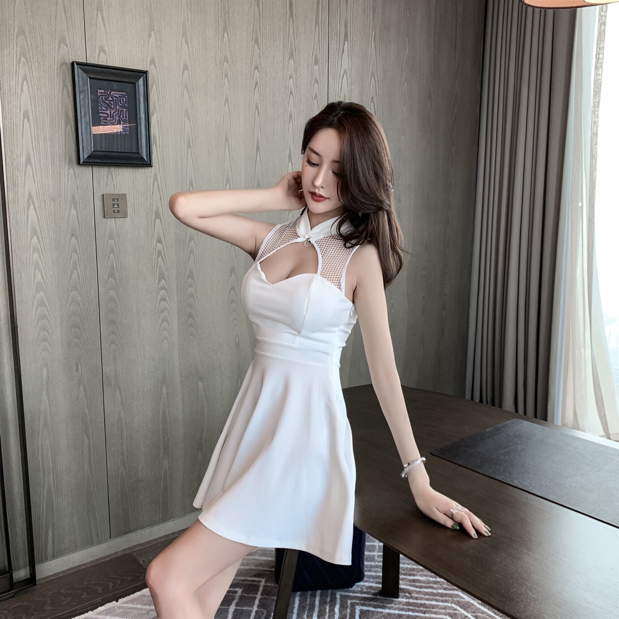 イブニングレディースオーバーオール、セクシーな気質、胸の透かし彫り、ウエスト、薄くてふくらんでいるチャイナドレスの改良版ドレス micat60733772709