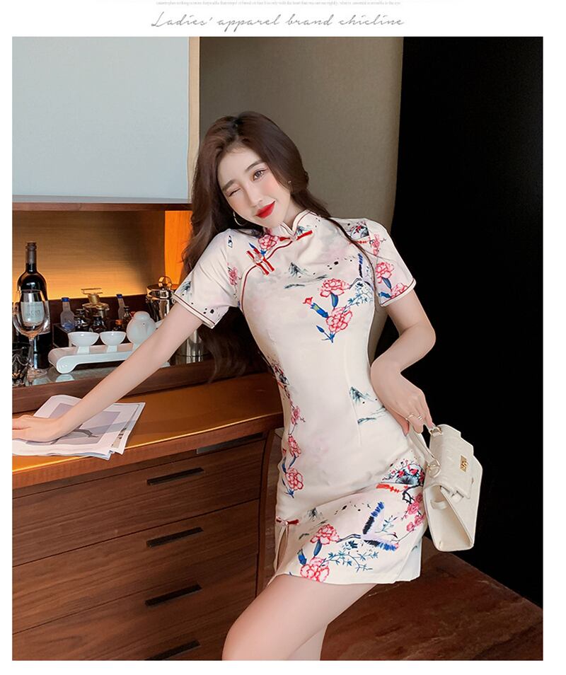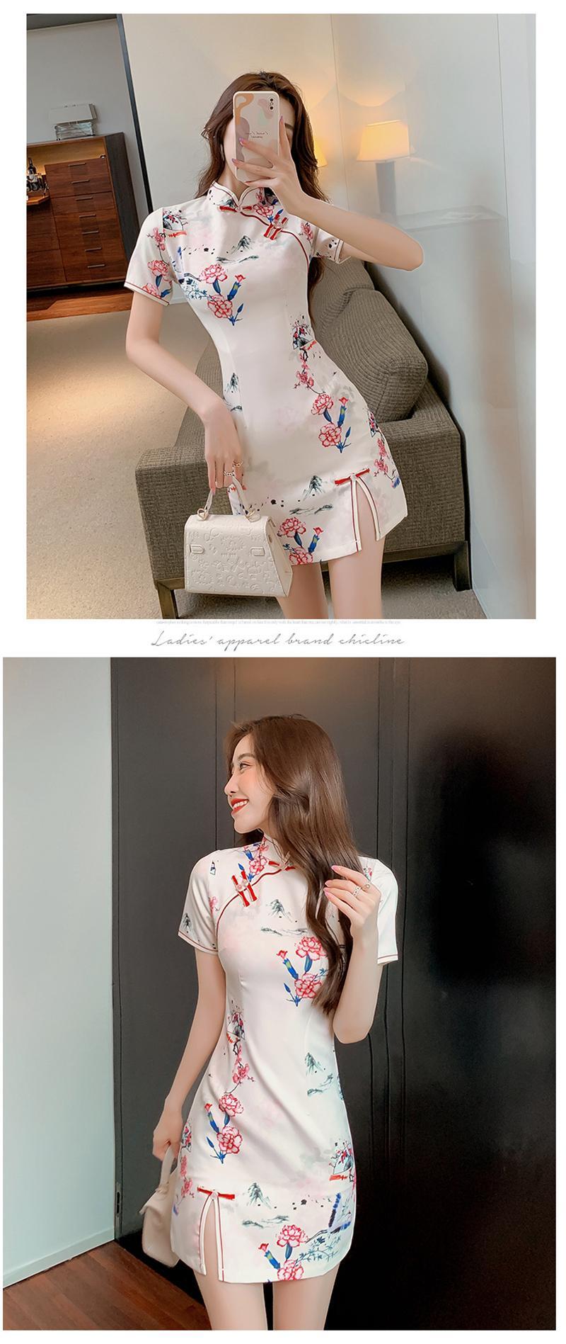 チャイナドレスの女性の夏は、国の潮の若い中国風のプリントの毎日のぴったりとしたショートヒップドレスの改良版 micat317491143