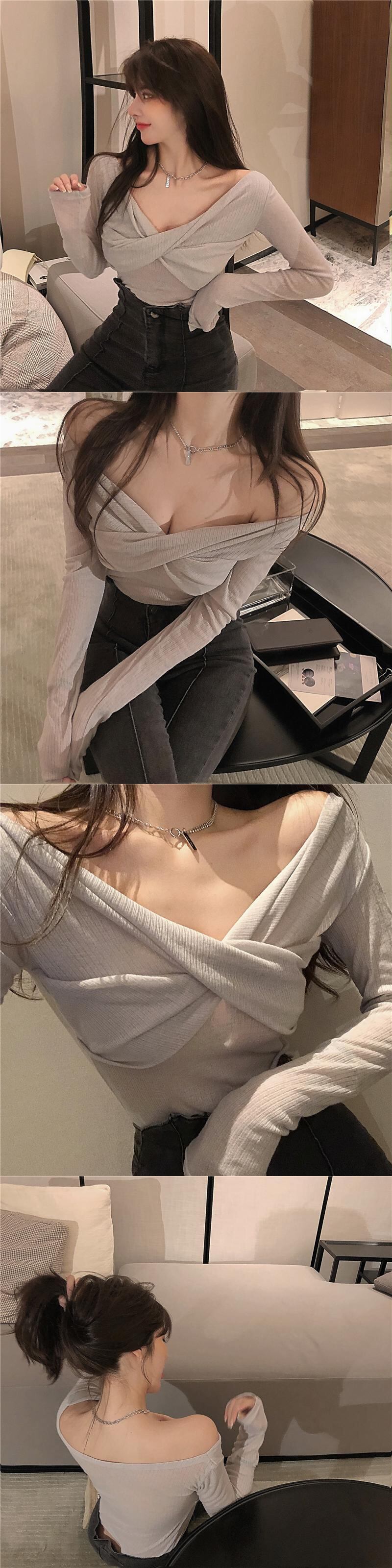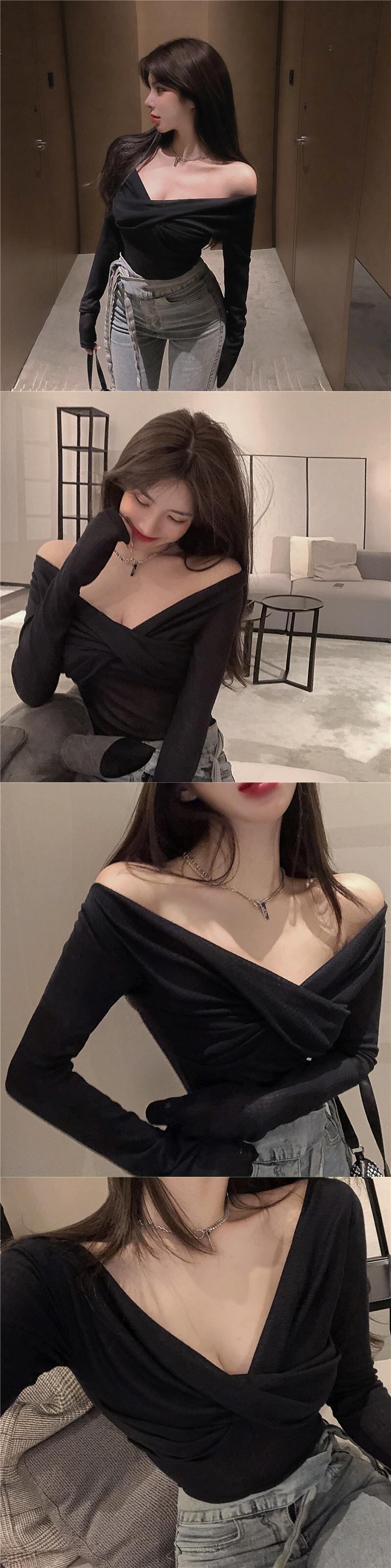 ライブ服ネットセレブ女性アンカー服eign気質セクシーローカットビッグVネックオフショルダー長袖セータートップ micat71756321895