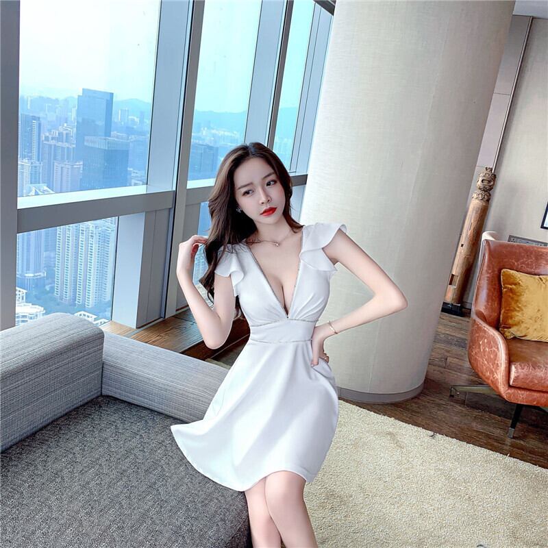 ナイトクラブの女性の作業服、西洋の気質、セクシーなローカット、深いVネック、ウエスト、薄くてふくらんでいるドレス micat90611785413