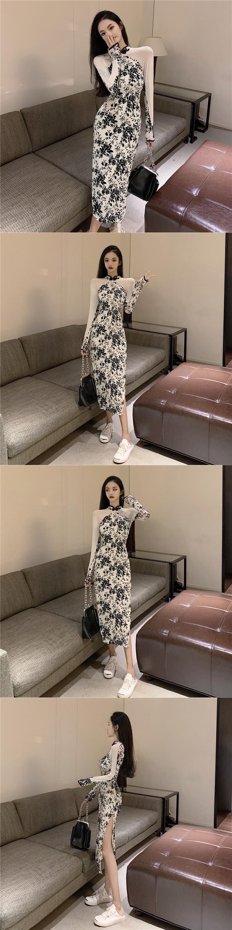 改良されたチャイナドレスのイブニングドレスイブニング女性の若いレトロな中国風のプリントセクシーなミドル丈のホルタードレス micat56298449529