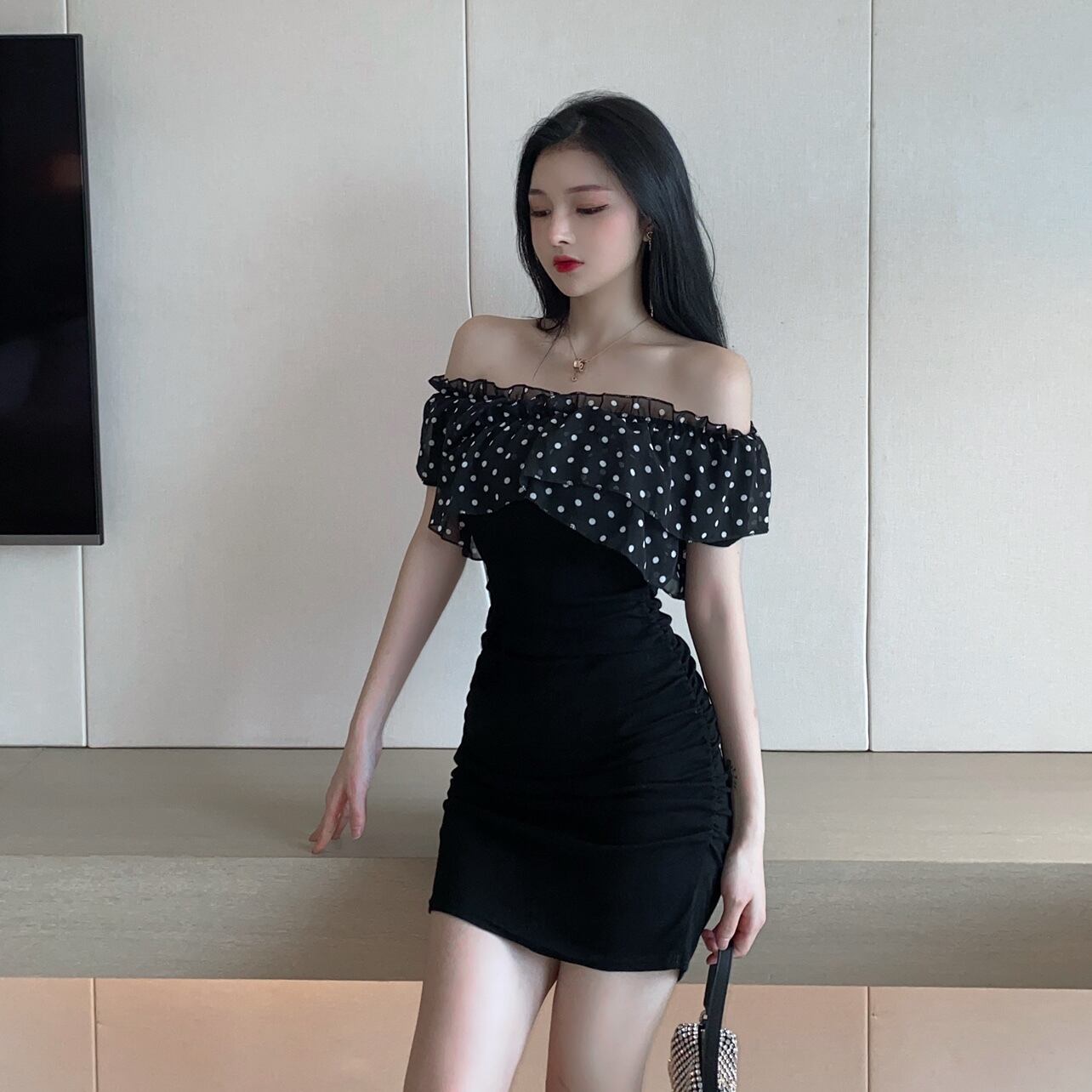 アンカーコスチューム女性スーパーフェアリーフレンチスウィート水玉ステッチ気質セクシーワンショルダースリムフィットヒップドレス micat5607419713