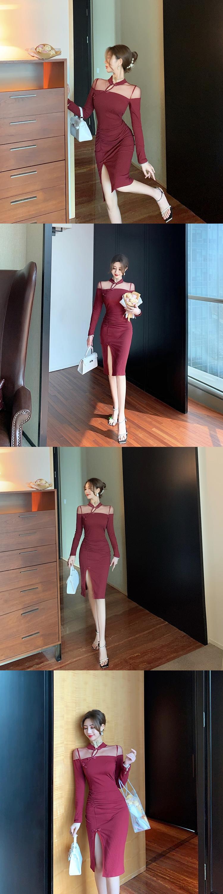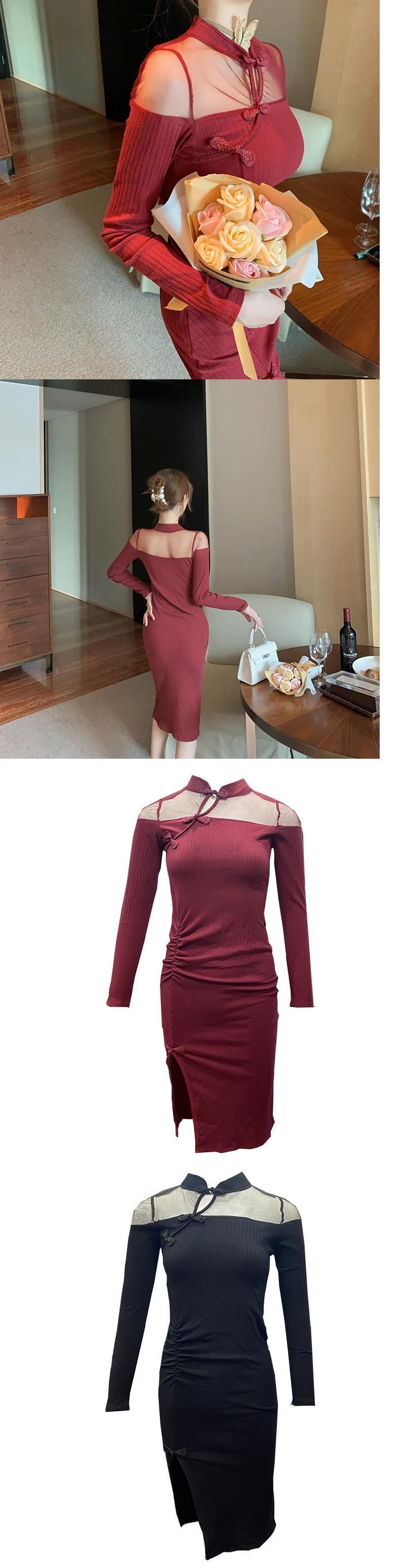 初秋の服2021新しい女性のネット赤いアンカーセクシーなメッシュステッチ若い改良されたチャイナドレス micat36400942162