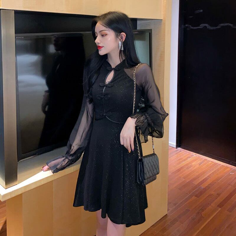 2021年秋新しい女性のダークヤングスタイルのスパークリングシフォンステッチ毎日改良されたチャイナドレス micat11059888936