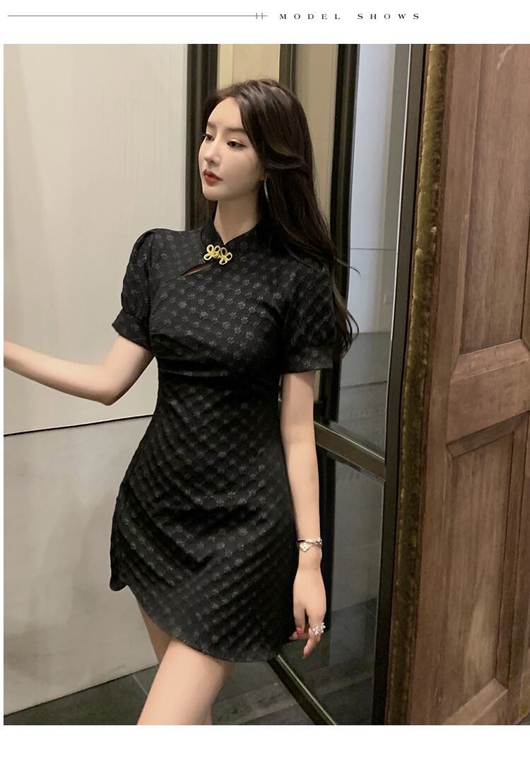 改良されたチャイナドレス夏の若いフランスのニッチなレトロなパフスリーブスリムな毎日のショートヒップドレス micat67019191037