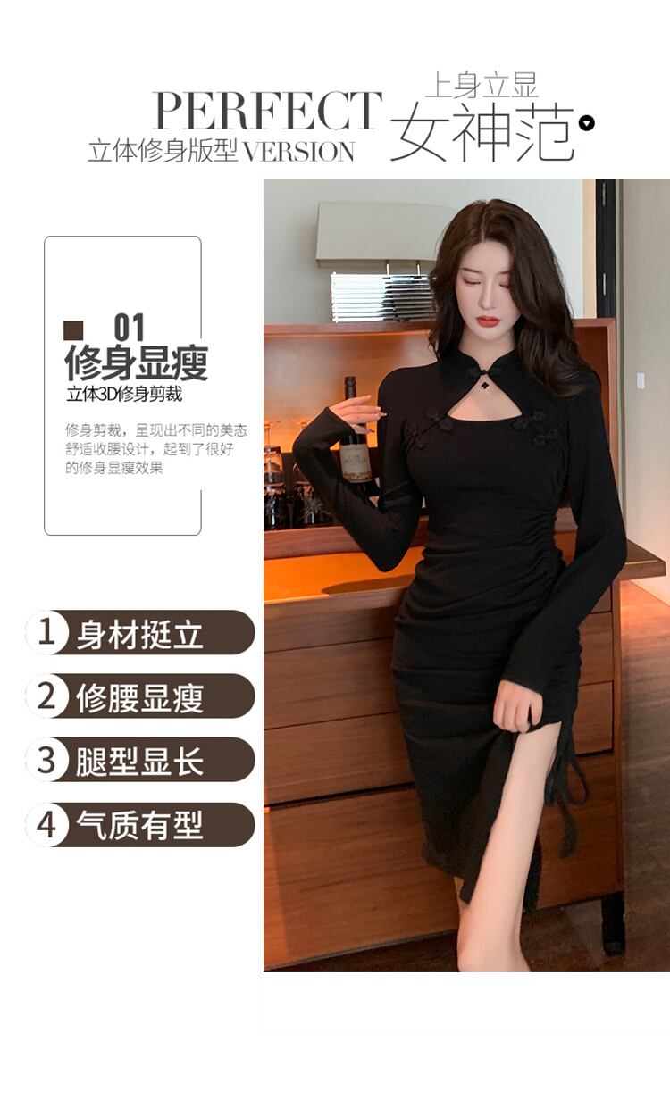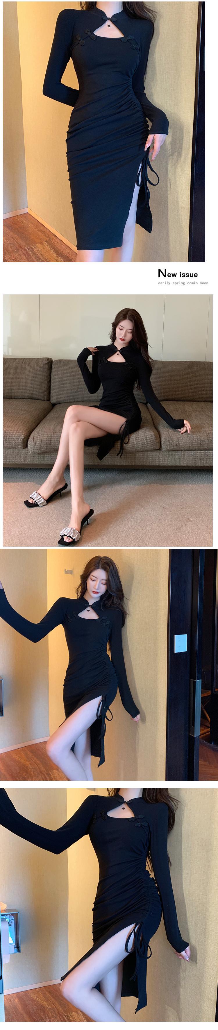 2021年秋新しい女性の若い黒のセクシーな巾着スプリットミドル丈の改良されたチャイナドレス micat11668102803