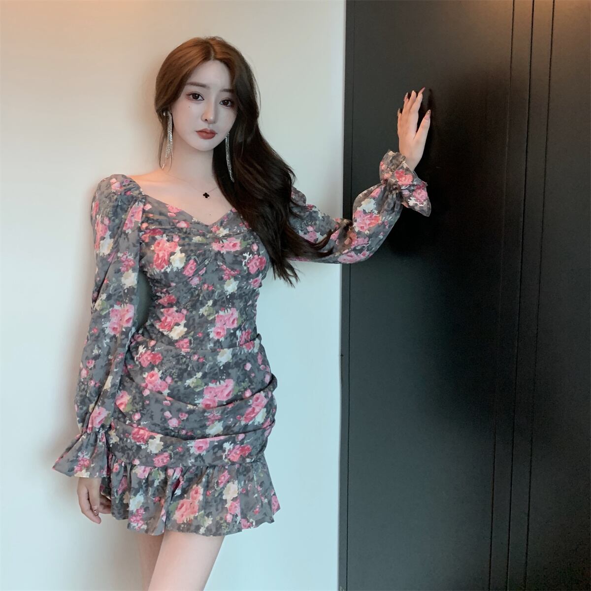 フランスのドレス秋の女性のドレス2021新しい高品質のレトロな花柄のウエストスカートは薄くてふわふわでした micat15358767232