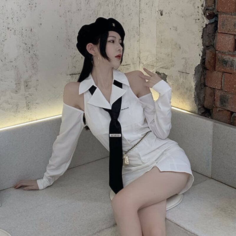 ネットセレブアンカーコスチューム女性のポジェニック秋ユニム誘惑セクシーな取り外し可能な長袖ラペルストラップレスホルタードレス micat94225889152