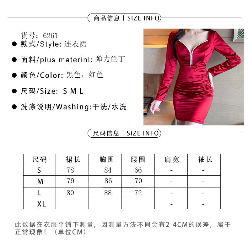 ナイトクラブレディースナイトワーク服作業服セクシージッパーローカットディープVネック長袖ヒップドレス micat19320222129