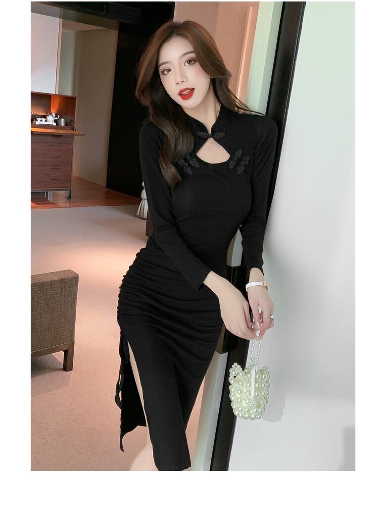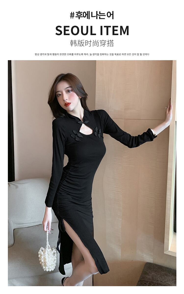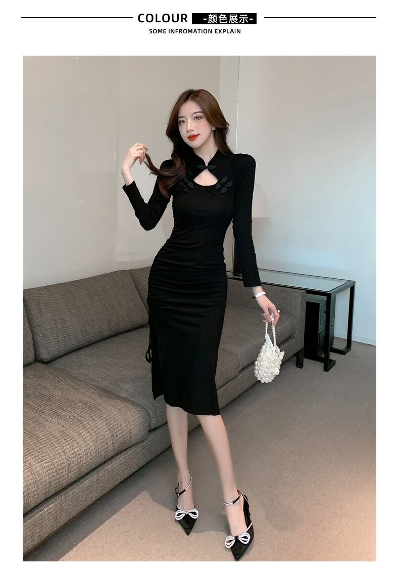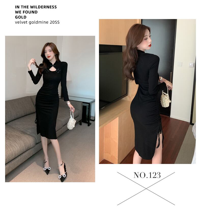チャイナドレス秋婦人服2021年ニュースタイルヤングファッションチャイナスタイル長袖黒ミドル丈ドレス micat75196237489