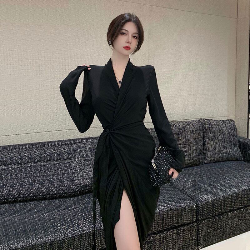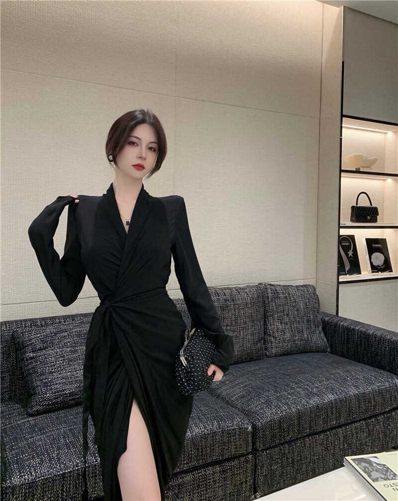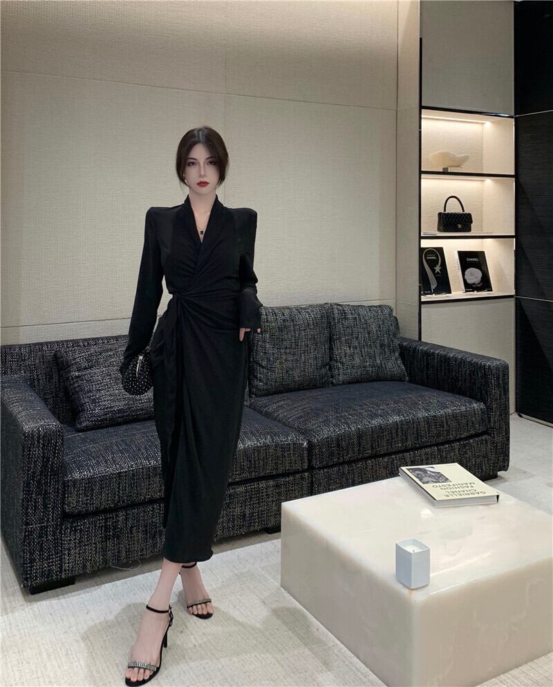 -冷たくて成熟したロイヤルシスタースタイルのロングスカート、女性の秋のスタイル、高級感のあるセレブリティ、気質、ウエスト、薄手のドレス micat58963218064