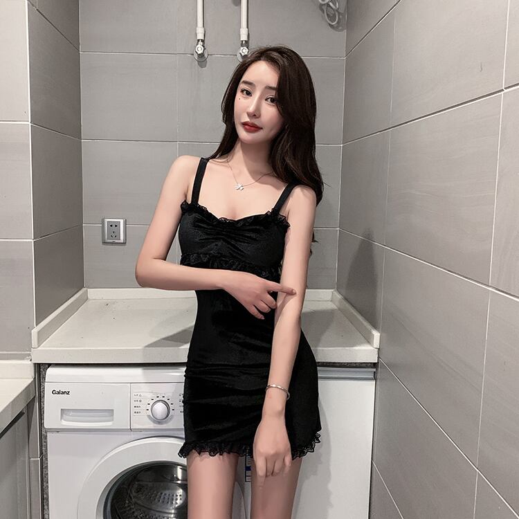 ナイトクラブの女性の夜の作業服セクシーなレースのステッチゴールドベルベットバッグヒップフレンチスリングドレス micat81439288707