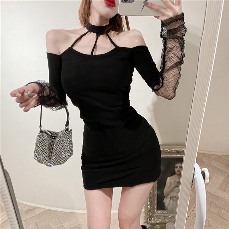 ネットセレブアンカーコスチューム女性のポジェニックナイトショージャンプセクシーネットヤーンステッチワンウェイネックストラップレスホルタードレス micat34440896810